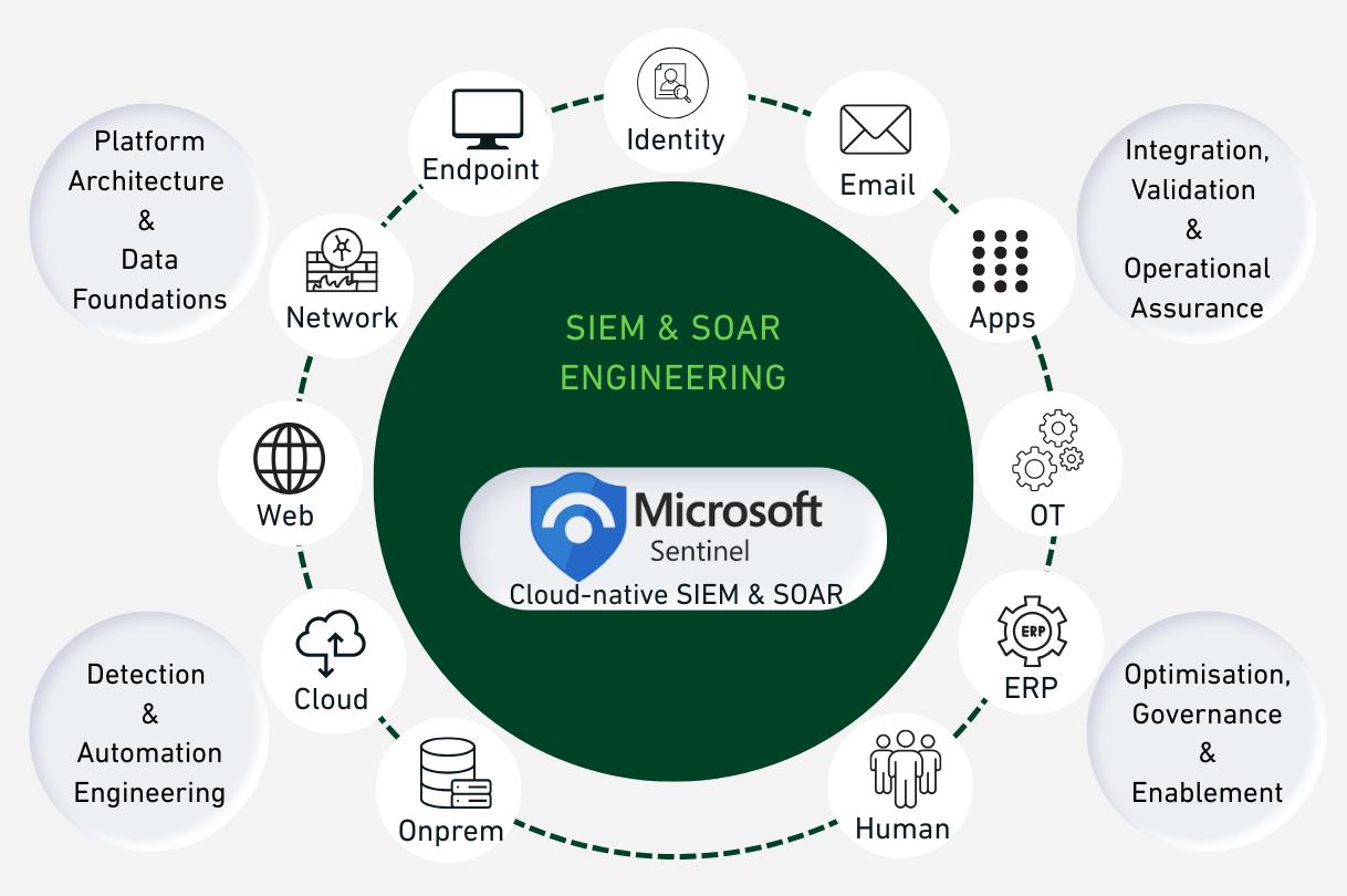Engineering for Microsoft Sentinel is an annual platform engineering service that designs, operates, and evolves Microsoft Sentinel SIEM & SOAR as a production security operations platform.
