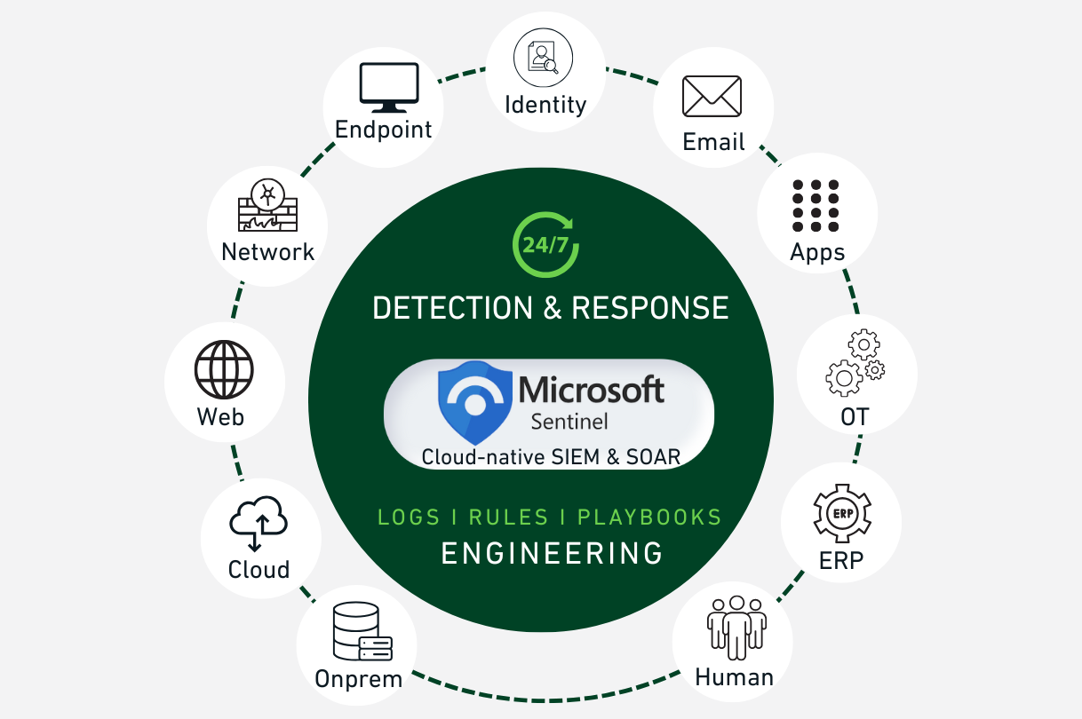Full lifecycle management of Microsoft Sentinel, from data ingestion and normalisation through to analytics rule maintenance and incident closure